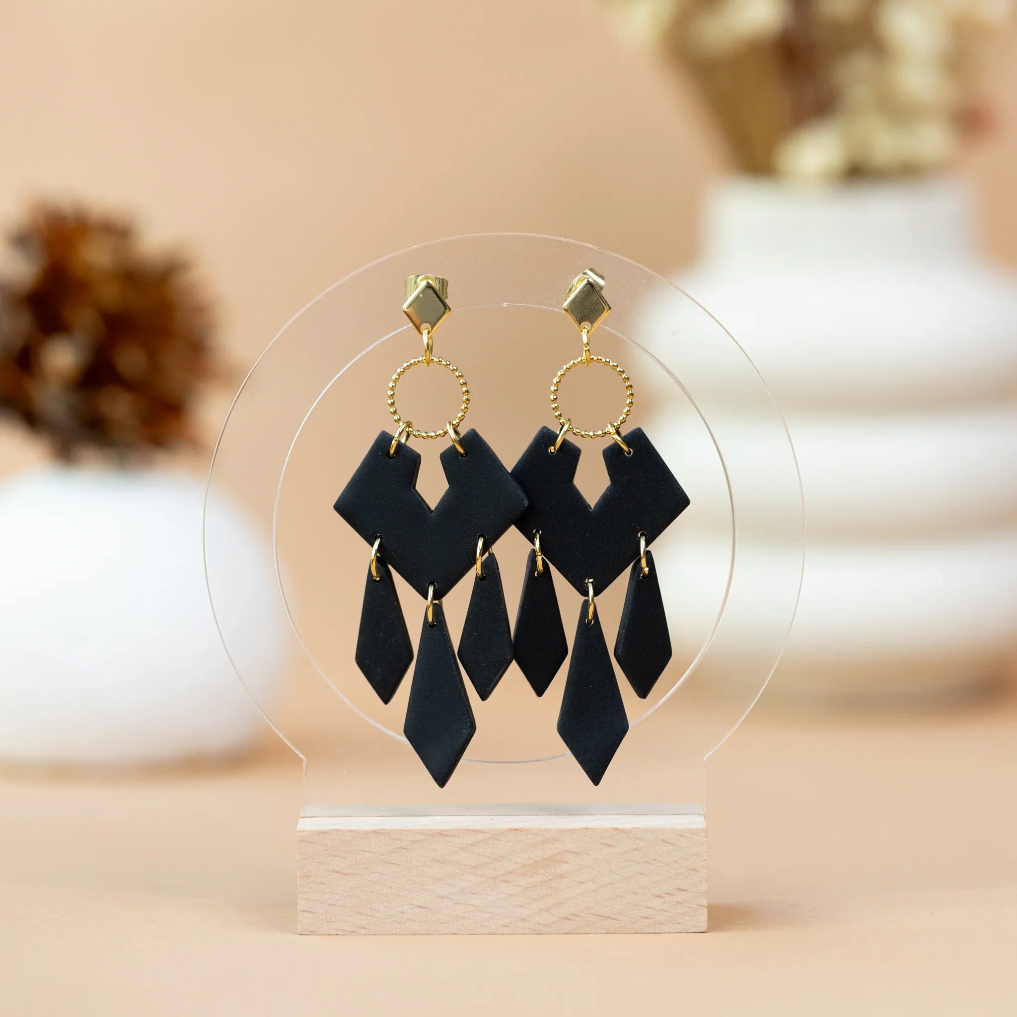 Cerceii din colecția Fall in LOVE sunt creați în combinații de culori calde, accesorii toamnatice sau atemporale, ideale pentru a-ți completa orice ținută. Cerceii din lut polimeric sunt extrem de ușori, flexibili și rezistenți în timp. Elementele metalice sunt din oțel inoxidabil 304, cu conținut redus de nichel, aceștia fiind potriviți și pentru persoanele cu piele sensibilă.