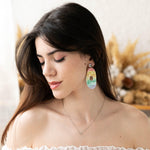 Cerceii din lut polimeric din colectia Rainbow sunt o explozie de culoare, realizati intr-o tehnica complexa cu lut transulcent si cerneala. Fiecare pereche este unica si nu poate fi reprodusa in aceeasi maniera. Cerceii Rainbow sunt disponibili in editie super limitata.